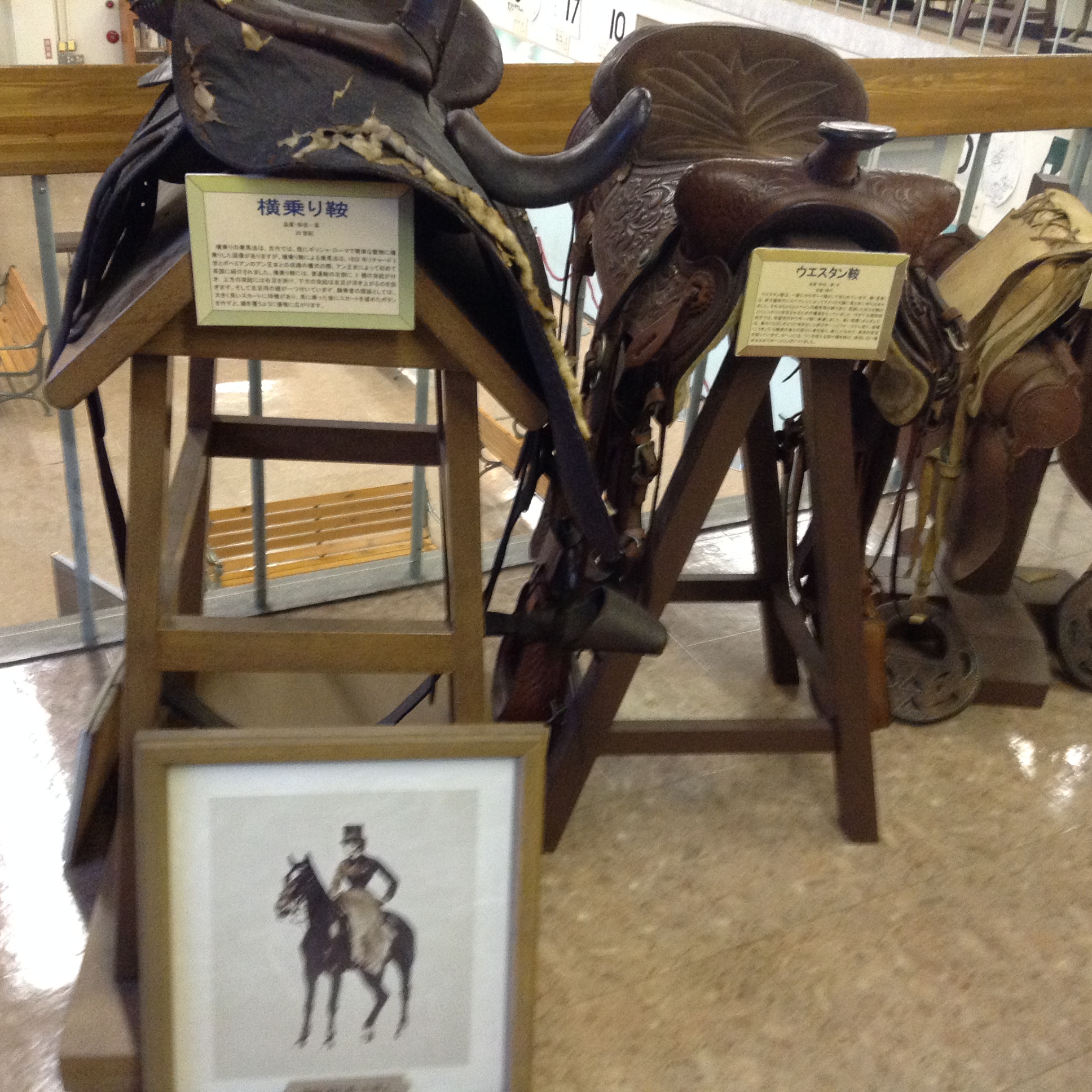 馬具とかいろんな鞍が展示してあった。誰もいなくて貸し切り状態