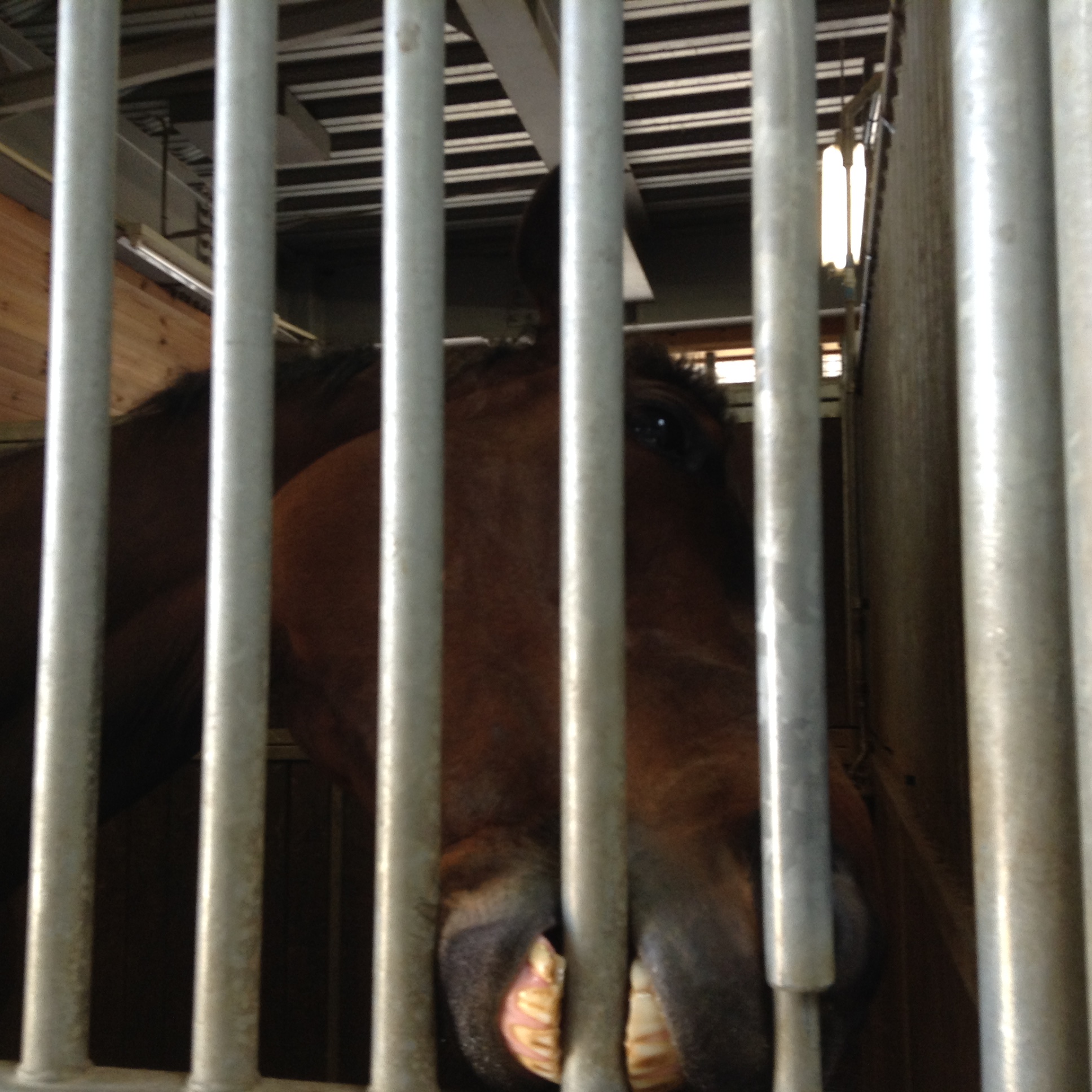先生によるとこの馬は他馬と正面から鉢合わせするのがものすごいびっくりするそうで、