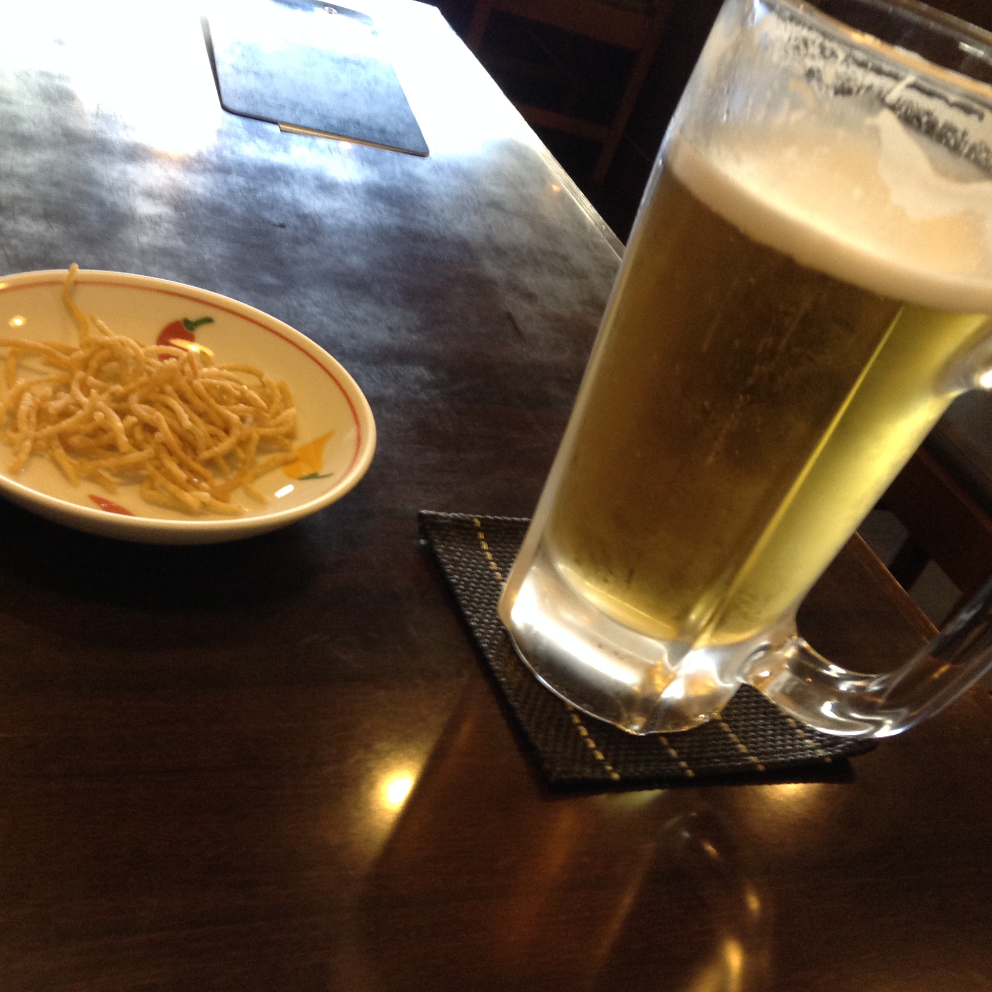 ↑練習帰りの蕎麦屋にて一杯withそばチップス