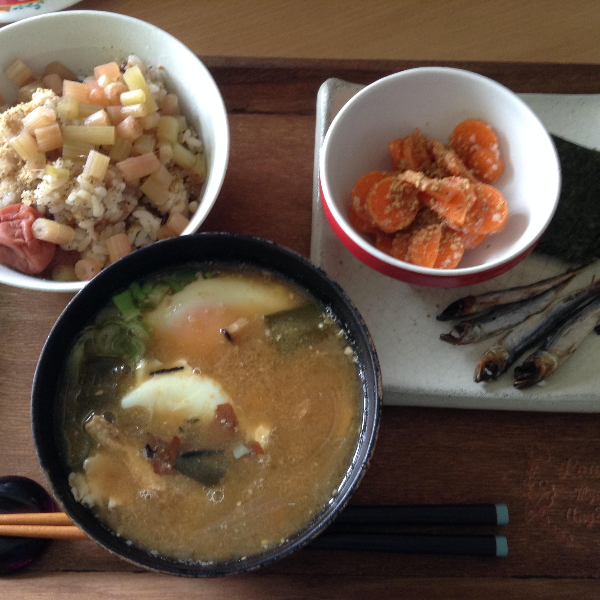 これ普段の定番ご飯だけど、馬練仲間様から自家栽培の収穫したてのふきをいただいたので