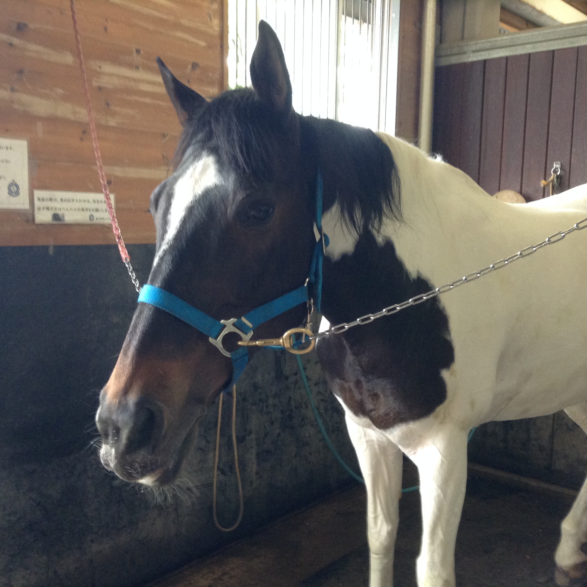 ↓こーんな牛っぽいブチのかわいこちゃんM(牝馬)がお相手。初騎乗