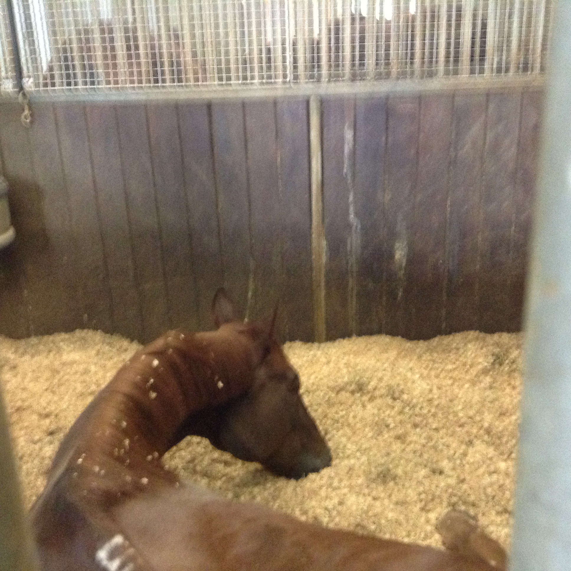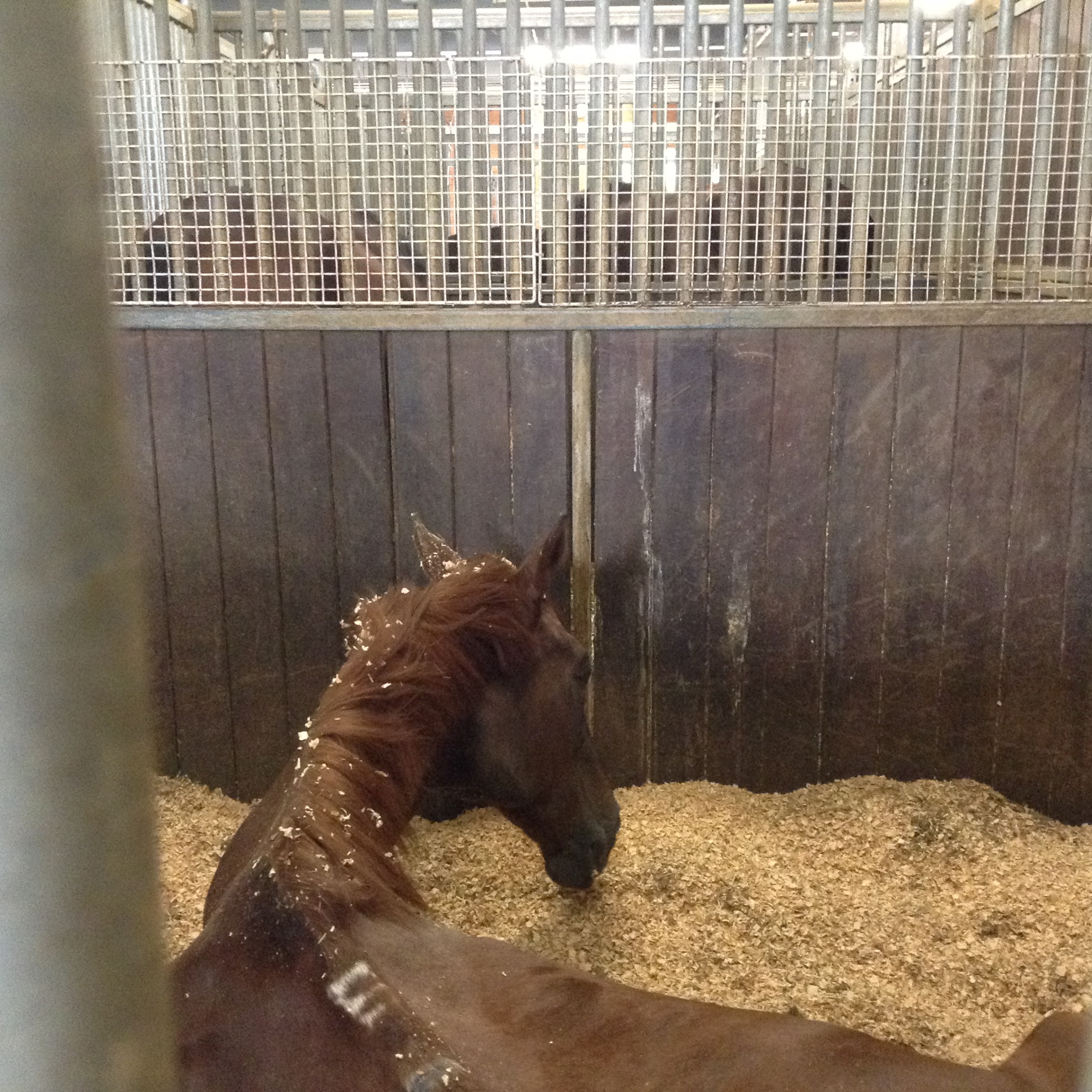 やや緊張します。でもやるしかないので馬房に入ると、、