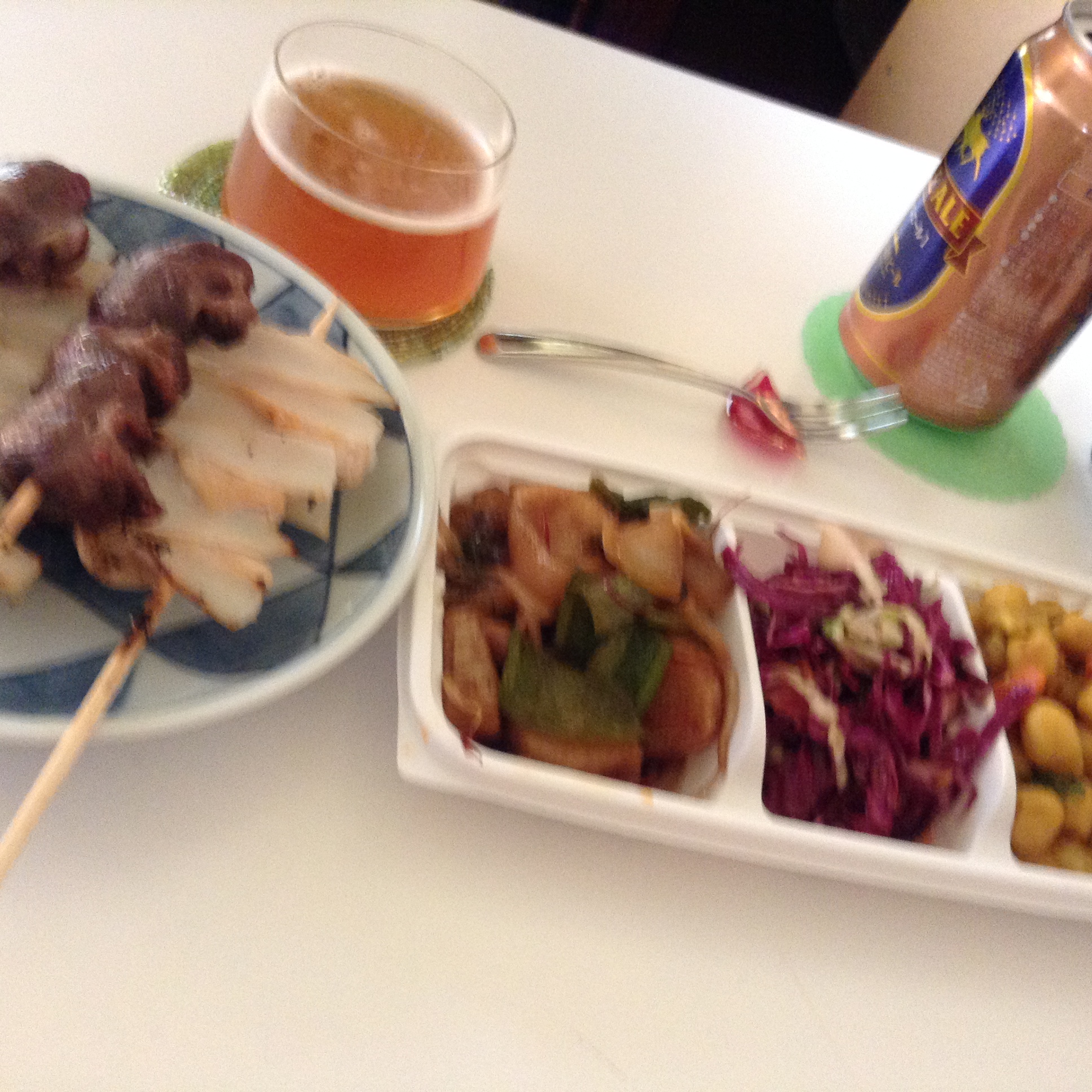 ヴィーガン食堂の惣菜にがっつりと串焼きを合わせてます笑 どちらも美味でした。
