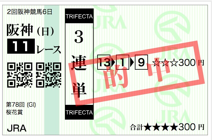 ゲン担ぎしといて良かったわ! いつもの豆券な上に配当安めだけど、回収率はばっちりです