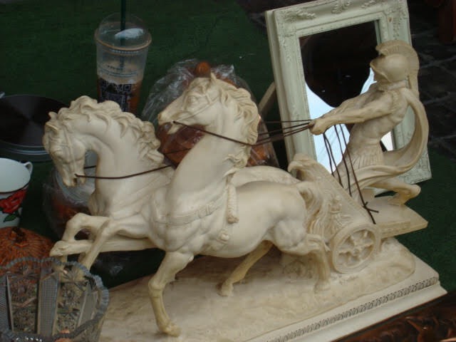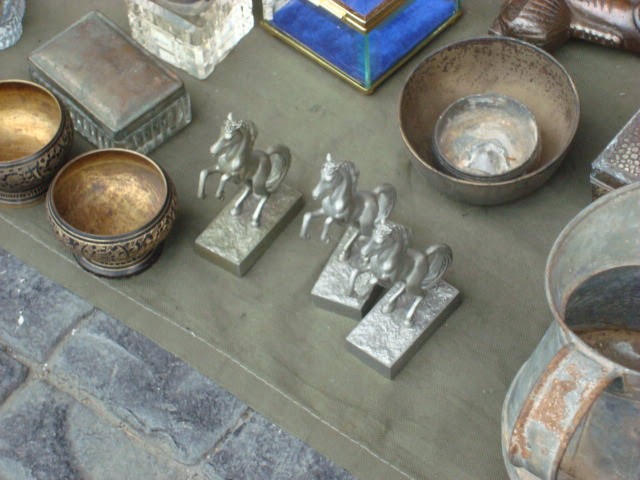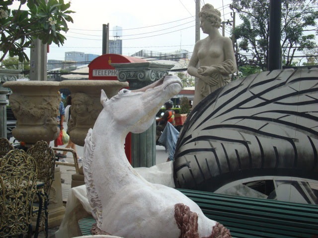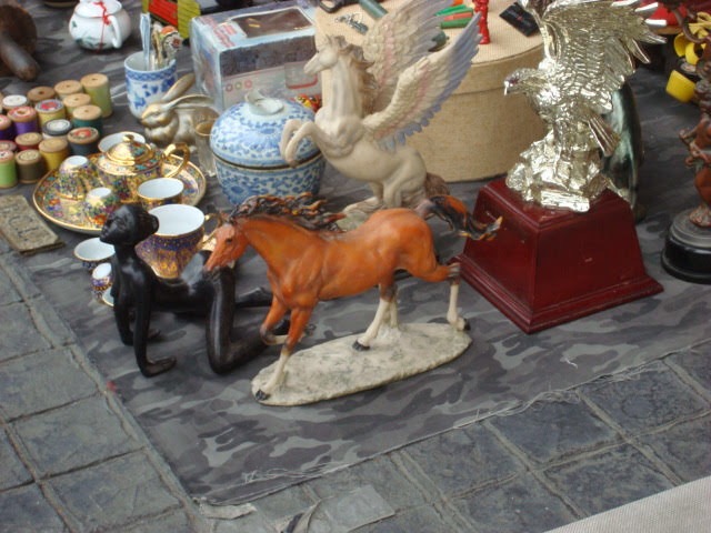 weekendマーケットを一通り回ってから、目当ての場所が見当たらず迷ってたらまた別の骨董市を偶然発見。タイは象ばっかのイメージだけど、これが結構馬グッズの宝庫!デカかったり重そうだったり割れ物だったりで買って帰るのはムリだけど、馬好きには写真に撮るだけでもなかなかのものでありました。皿と並んでるばん馬っぽい陶器のやつはかなり欲しかったな〜…
