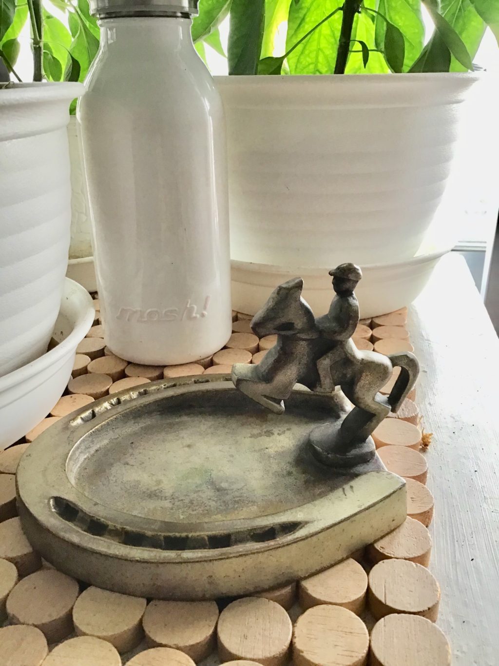 (買った時の値段の)三倍のねだんで言ったら欲しそうだった人帰っちゃったから安くした、蹄鉄ってバクチの御守りだからなんでしょ?ってお店の人は言ってたけど、、いや〜ラッキーでしたわ。なんかこの日はいつもより大量に馬の置物とか発見したし、よくわからない素麺入れ?みたいな夏に冷やし蕎麦とか入れるような馬の絵の食器があったり、こんな日もあるんですな。でも買ったのはこれのみ。使い道が何のものなのかイマイチ微妙だけど、毎日目に入るように玄関の鍵置き場にしました。