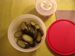 ぼんやりしながらいつのまにか買っていたきゅうりのぬか漬けと一緒に。