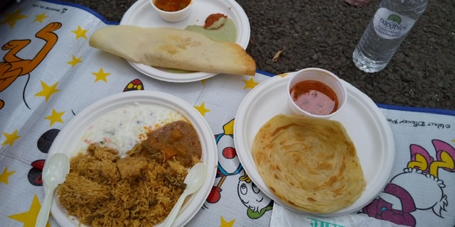 因みにフェスでの食事はこんなかんじ!南インド料理に最近ハマっているのでドーサ、ポロッタは欠かせません。こーいうのが屋台で食べられる幸せ