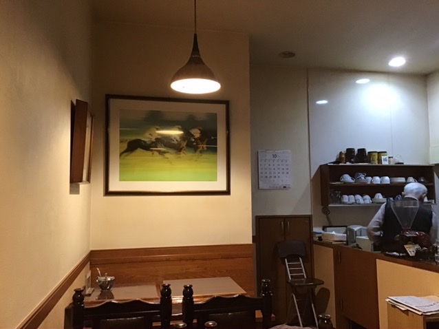 高円寺の〆にたまたま目について入った超ミニマルで素敵な喫茶店。競馬の絵が飾ってある。翌日馬券が当たりました笑