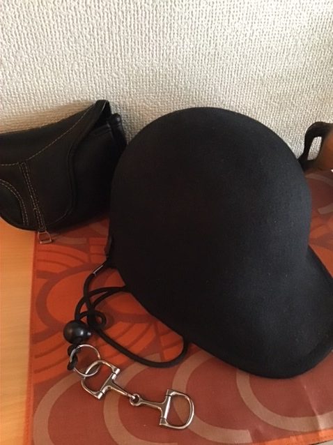 サイクルキャップに形状の似た帽子があったので(乗馬ヘルメットにそっくりな感じの帽子)これに百均の帽子留め(顎紐タイプ)、そして帽子留めに重みをつければモアベターかもって感じで、使い道に困ってたハミ型のキーホルダーをぶら下げて、なんちゃって馬グッズ的な冬仕様サイクルキャップにしてみました 笑