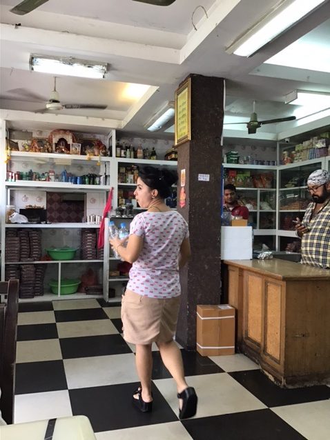 デザートは小さめの何かの焼き菓子で、これが衝撃の甘さ!ラッシーは日本みたく甘くないけど、菓子系はさすがというか容赦ない笑 でもこんな感じのを箱買いしていくインド人のお客さんが次々とやってくる。因みにこの日店内で食事をしていくのも自分たち以外は100%インドの方々