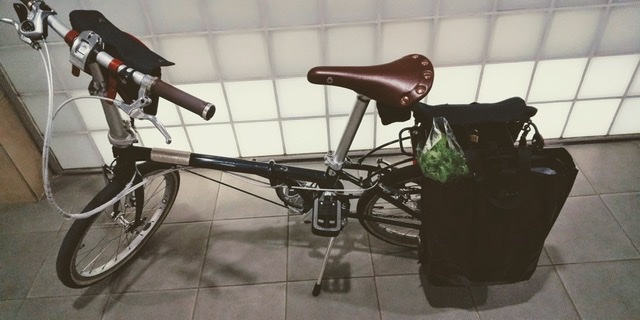 BIKEZACっていう北欧のお買い物用チャリバッグ。これ便利!ミニベロにはちょっとサイズ感がでかいけど、付けられないことはないです。シンプルでかわいいし野菜とかすっごい入るし軽いし畳めるし、こういうのをいろんな大きさとか色のバリエーションで日本の300円ショップとかでも作って欲しいもんです。てか自分で作りたい。何とかつくれないかな〜。