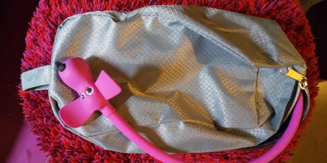 ↑このバッグをつけようとしたんだけど、薄いのに超絶に頑丈で、うちの工具ではハトメ穴が開けられなかったので鍵入れになってしまいました。鍵は地元で売ってたピンクの犬を使ってます。