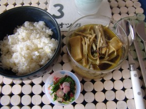 はんぱ野菜(買って来たものの残り)がたくさんあったのでオムライスにして片付けました。