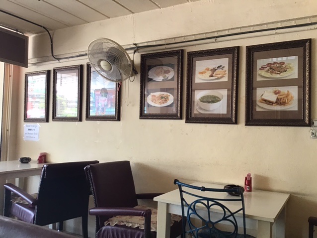 4時間くらい電車にゆられてパタヤに到着!駅ではソンテウっていう乗り合いバスが待機してるので、それでビーチの方へ向かう。あまりの暑さから避難すべく、バス降りたらひとまず目についたオープンエアのカフェに入ってみると、西洋っぽいメニューばかりが目につきます