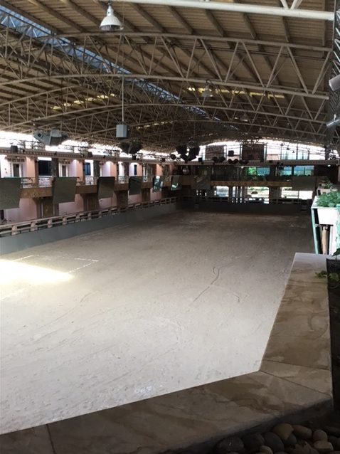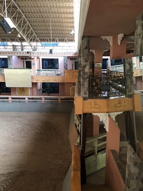 笑っちゃうのが、部屋出るといきなりこんなでかい内馬場なんですよ。巨大な乗馬クラブにちょこまかと部屋がついてるって感じなんですよね。日本でも昔北海道の馬産地の乗馬施設に泊まったことあるけど、こういう感じとは違うし(もっと牧場!って感じ)、これは珍しいですな〜。