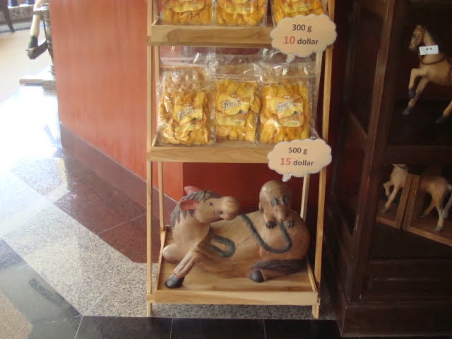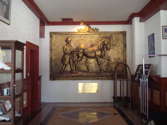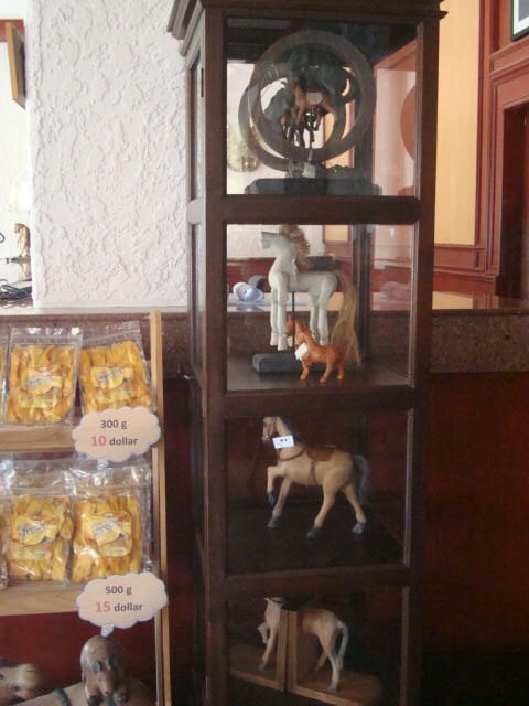 ロビーでも人間の食べ物より馬優先主義。下のゆるい置物、、