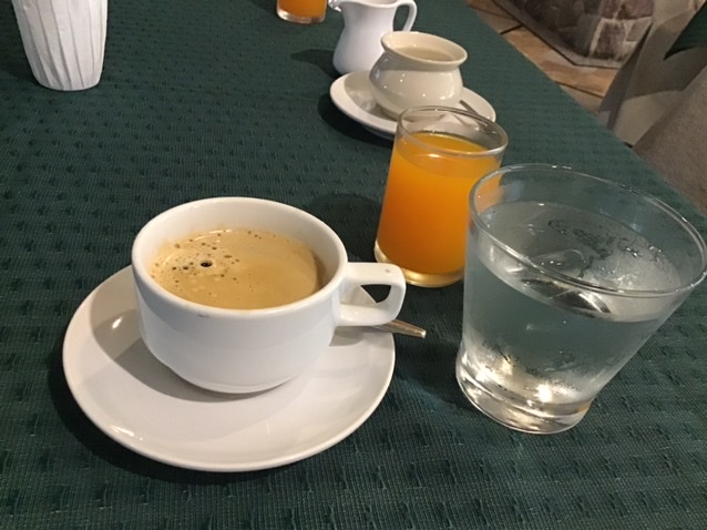 さて、一晩眠って朝になり、がら〜〜んとした巨大な内馬場を見下ろす場所にて朝ご飯。他に誰もいない、、ちょっと申し訳なさを感じるほどに誰もいない静かな静かなレストラン。例によってメニューを撮影しそびれてますが、やはり洋風メニュー中心で、唯一若干タイっぽいかなと思われる雑炊のようなものにしたけど、味は覚えてない笑