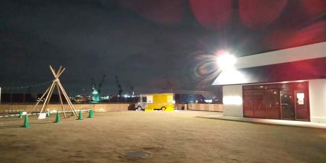たぶんクリスマスイルミネーション設営前の海辺広場。誰もいないはずだったんだけど、、
