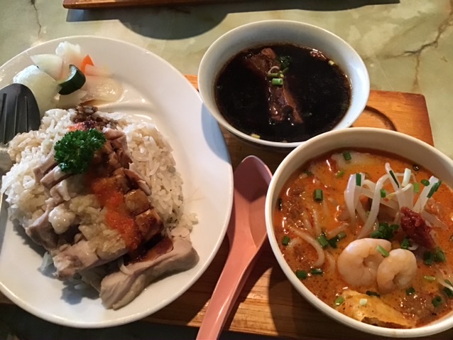 チキンライスとラフテーとラクサ 定番系全部ついてきます⭐︎カフェサイズでもそこそこ満腹になれるけど、もう少しサイズUPしてくれてもきっといける気がする…