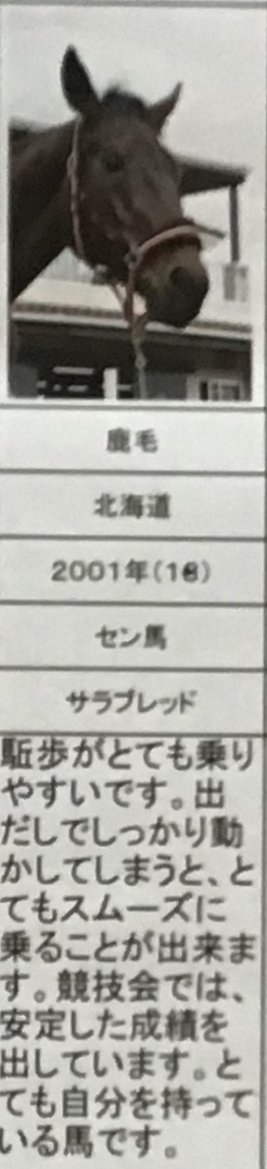 今回自分が乗ったのはこの馬!、、前回と同じ馬。