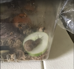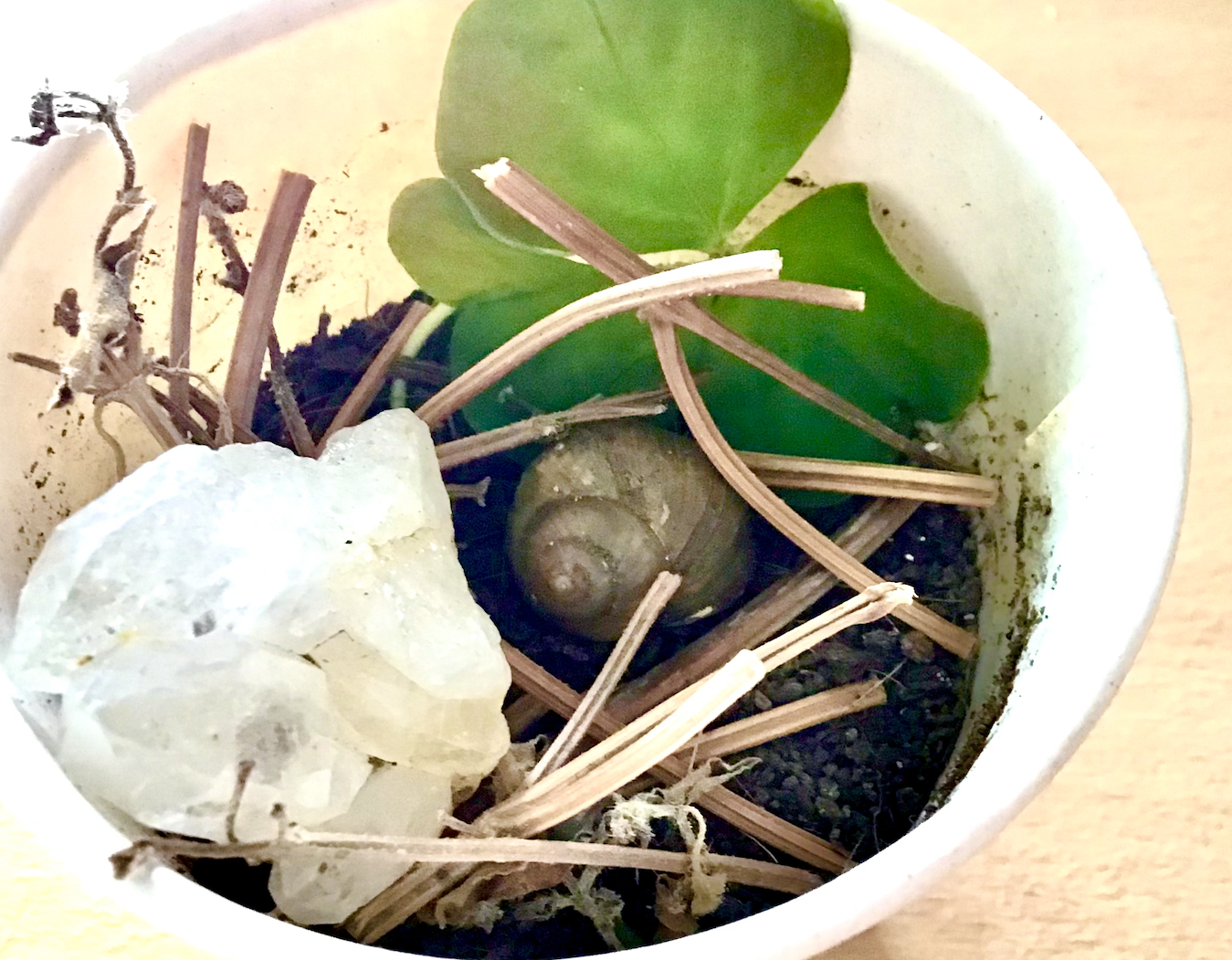 ようやく少し涼しくなる少し前のこと(カタツムリを飼育し始めてついに5年め!という頃)ですが、借りている畑からのオオバコの葉にくっついてうちにやってきたウスカワマイマイの「オオバコ」が旅立ちました。「すぎな」「すもも」よりほんの少し後輩で、ほぼ同期の子です🐌