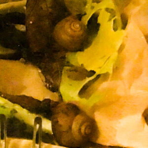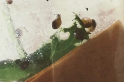 元旦のカタツムリたち(写っているのはウスカワマイマイ「すもも」の子たち)。いつも元旦のカタツムリ界隈は静まり返っているのに、比較的暖かい今年はちょっと様子が違います。寝てる子はずっと寝てるけど。さて、カタツムリたちが穴から顔を出したりこぞって食べてるのは飼い主の畑で採れた小蕪の葉っぱ。ちょっと萎びかけてきた感じのが一番人気です😆 小蕪じたいも去年よりもずっと大きいのが採れるようになり、飼い主ともども助かりまくってます😄